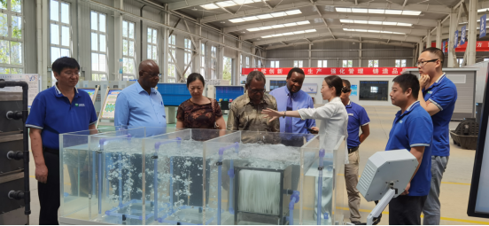 津巴布韦大使一行先后参观了大禹文化展厅、智慧生态农业示范园、污水处理站、滴灌带生产车间、智能制造生产车间、管材车间等,详细了解了大禹节水发展历程、使命愿景、荣誉奖项、党建工作、中国节水论坛等全产业链布局以及元谋节水灌溉项目、彭阳人饮项目、武清农村污水处理项目等代表性案列及商业模式。